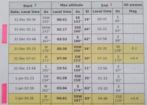 Die kann man z.B. auf der Website von N2YO.com als 10-Tages-Vorhersage abrufen. Wenn der Elevationswinkel