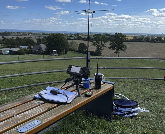 Als Gerät hatten wir einen Icom IC-705 mit knapp 10 Watt Ausgangsleistung dabei und eine