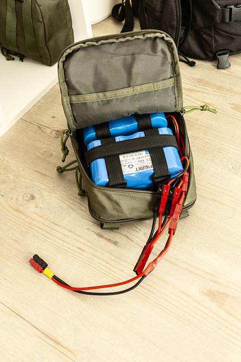 Ich entschied mich für 2 flache 12V/6A Akkus von Eremit, pro Außentasche,