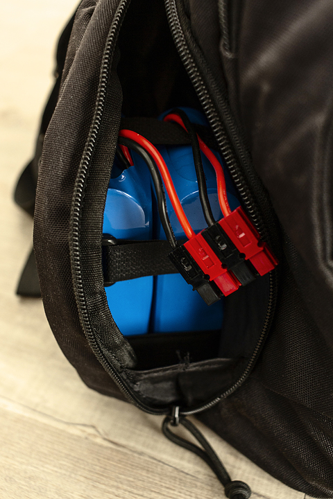 Stromversorgung also den Akku in den Rucksack integrieren kann.
